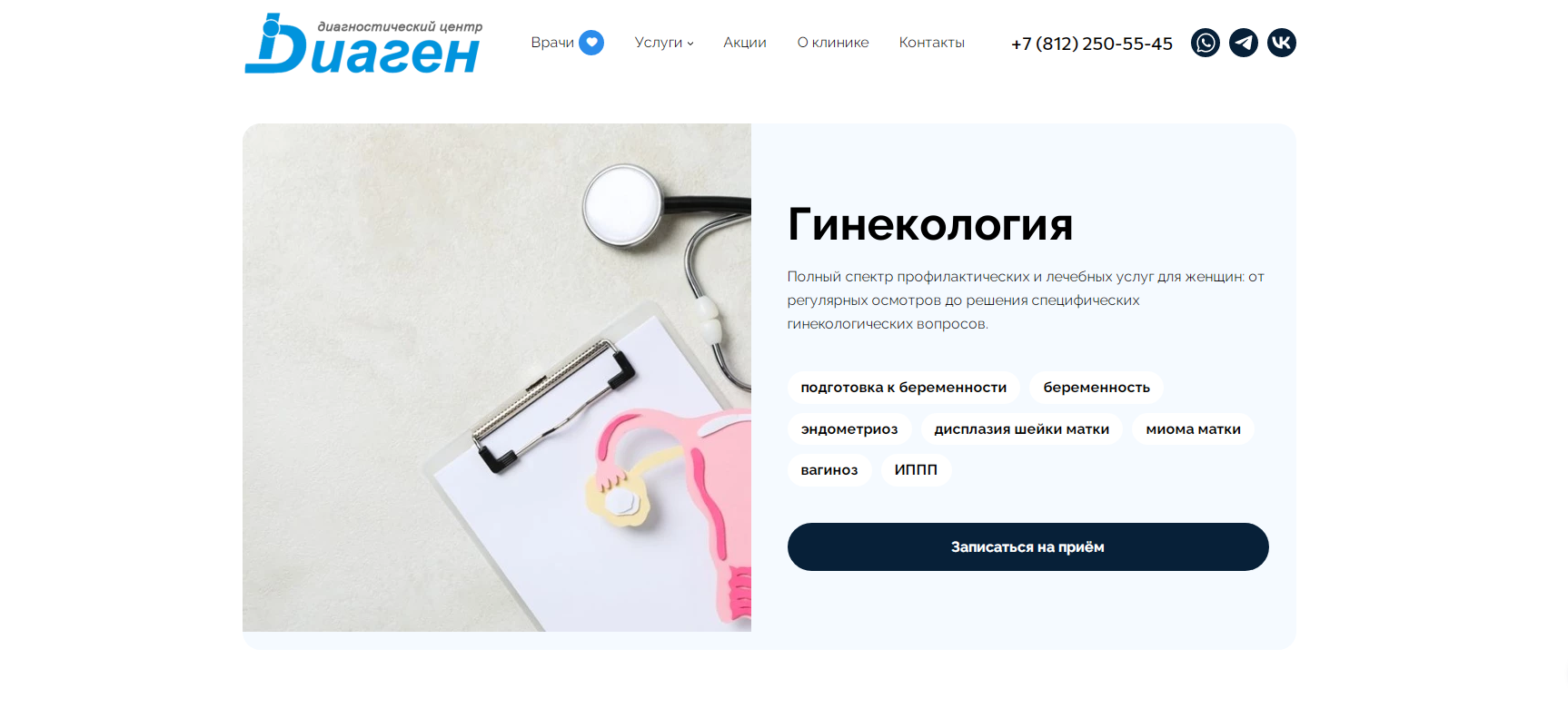 Полный спектр профилактических и лечебных услуг для женщин: от регулярных осмотров до решения специфических гинекологических вопросов.